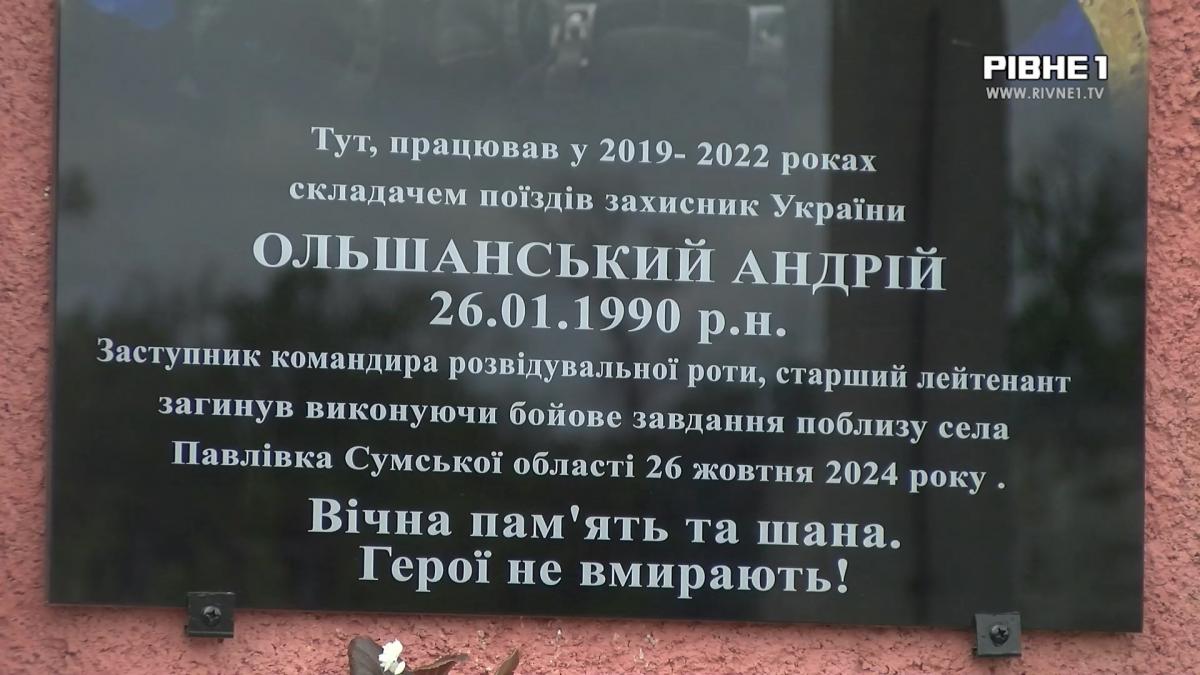 З жовтня 2017 року Андрій Ольшанський працював у Рівненській дирекції залізничних перевезень. Там й встановили меморіальну дошку.