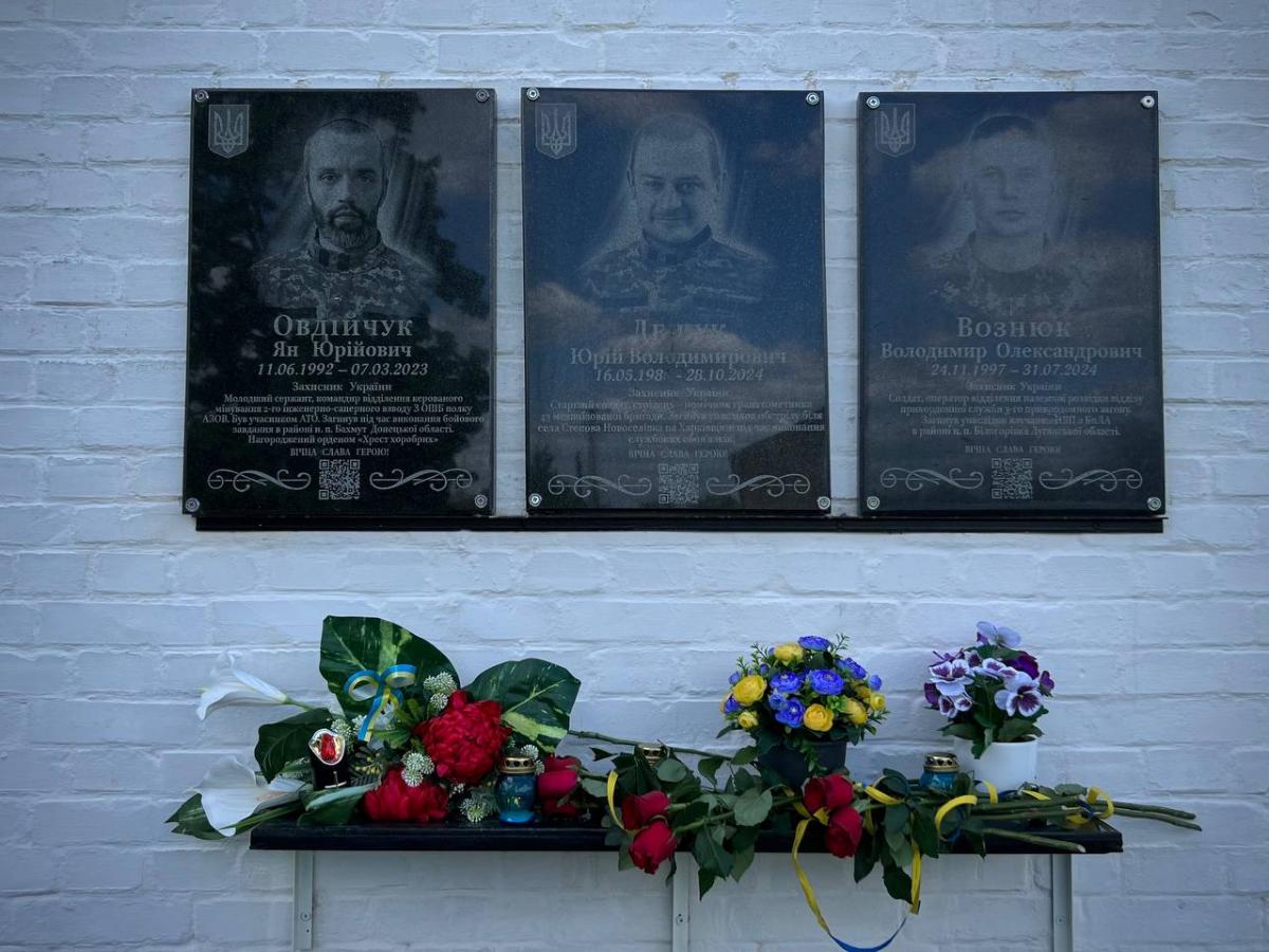 У Пеньківській філії Пісківського ліцею імені Героїв-земляків урочисто відкрили меморіальні дошки на честь воїнів Юрія Лешука, Володимира Вознюка та Яна Овдійчука. Про це повідомляють в Костопільській міській раді.