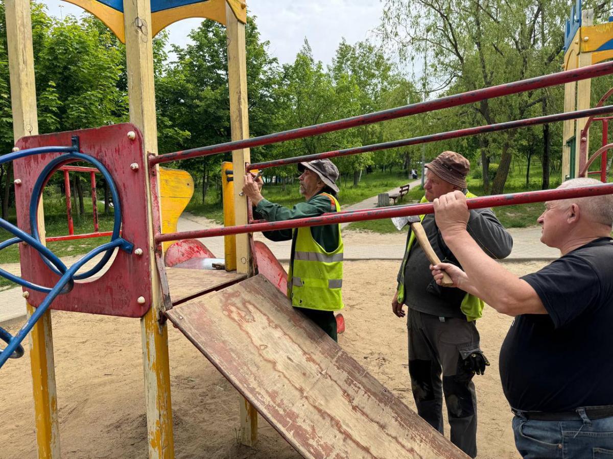 Окрім того, в різних частинах міста тривали ремонтні роботи на дитячих майданчиках.