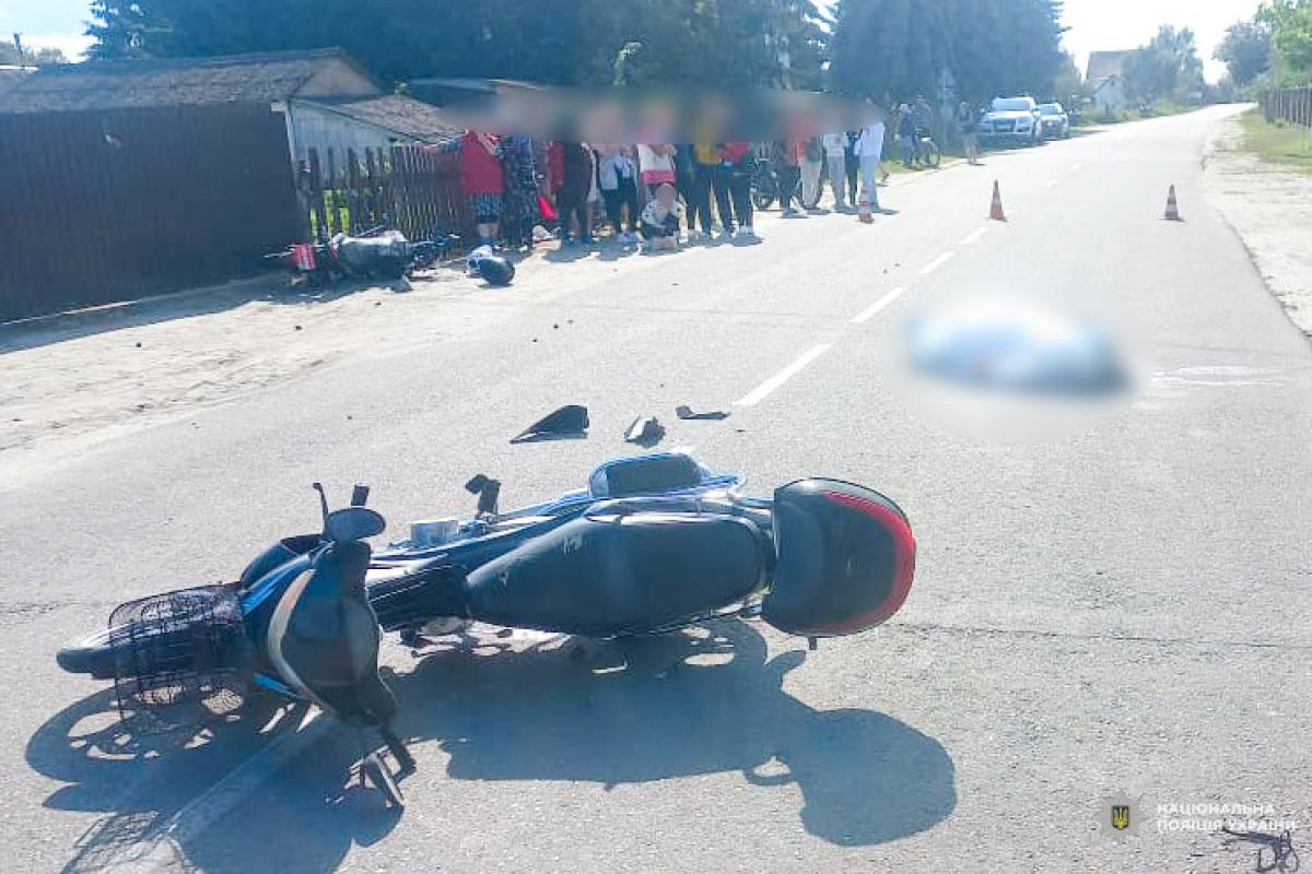 Жінка та її донька, 8-річна пасажирка були без мотошоломів. Правоохоронці з’ясовують, чи отримувала вона посвідчення водія відповідної категорії.