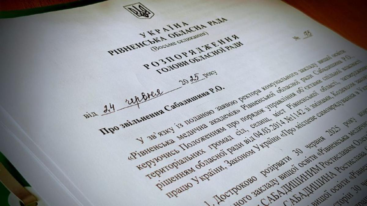 Ставимо крапку. Ростислав Сабадишин написав заяву на звільнення з посади ректора Рівненської медичної академії за згодою сторін. Відтак його контракт достроково припиняється з 30 червня, я підписав відповідне розпорядження, - написав Андрій Карауш у своєму телеграм-каналі.