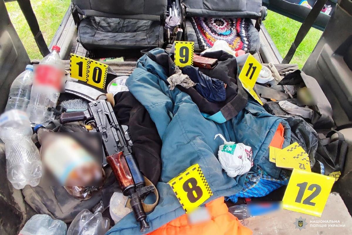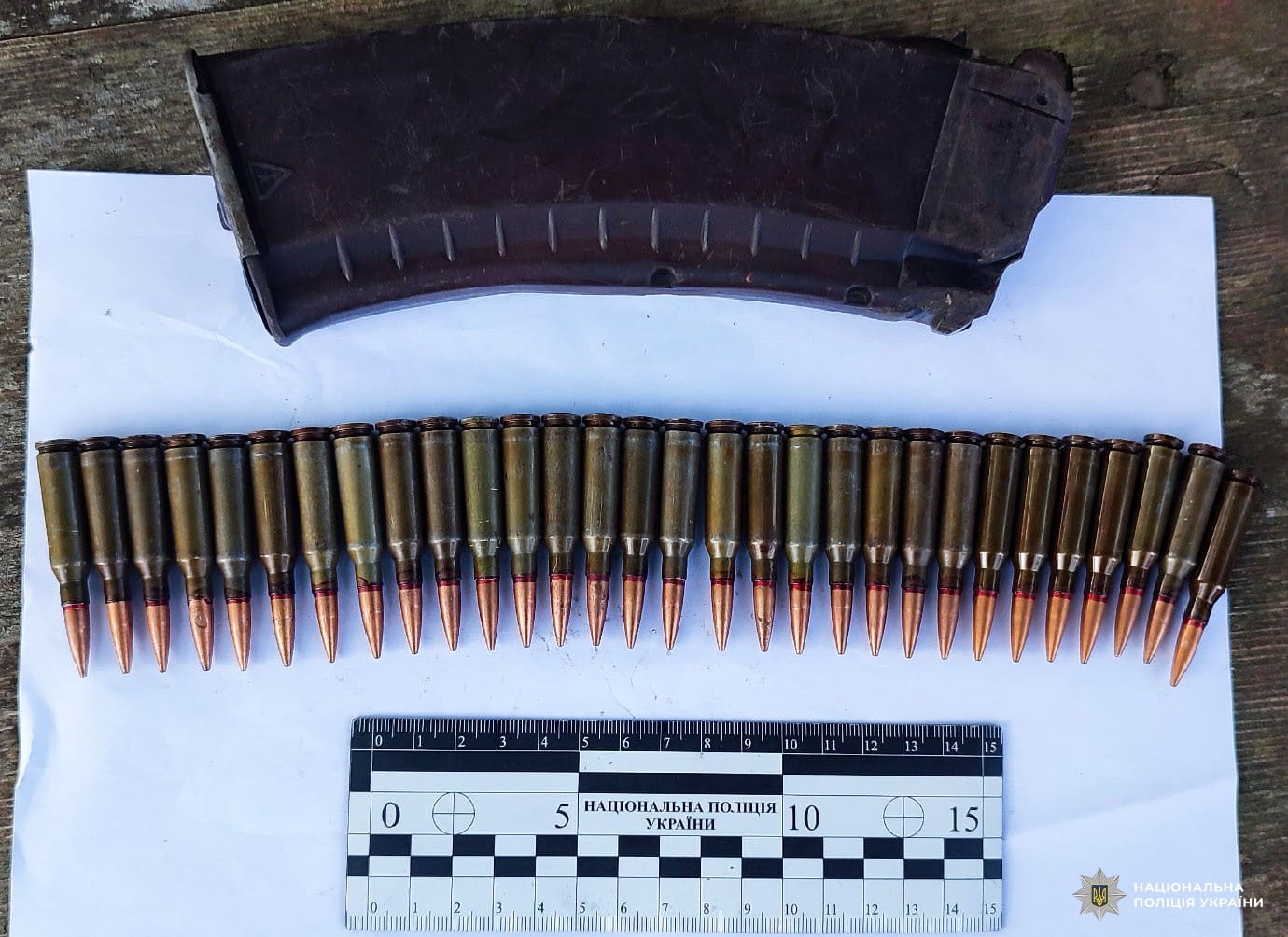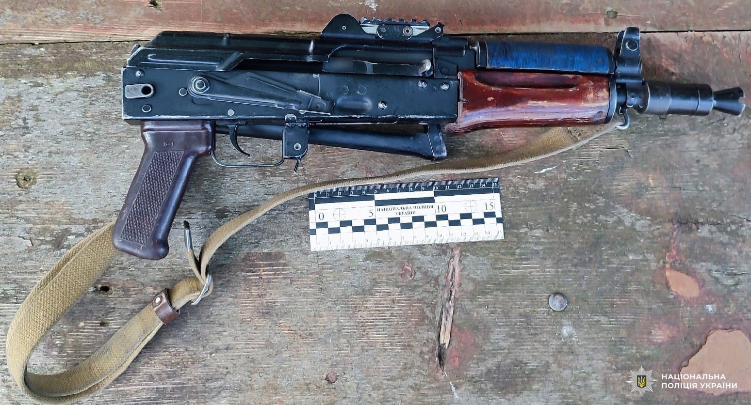 Слідчо-оперативна група спільно з кінологами та вибухотехніками під час огляду легковика «ВАЗ-21083», який належить 41-річному жителю села Золотолин, виявили та вилучили автомат АКС-74У, 3 магазини, 151 патрон калібру 5,45 мм, 7 гільз калібру 5,45 мм.