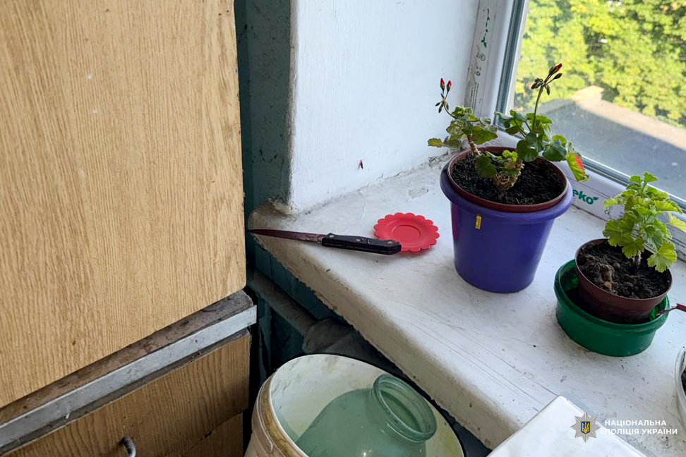 Працівники карного розшуку виявили фігурантку на кухні: її одяг був у крові. Слідчо-оперативна група вилучила речі, а також знаряддя злочину.