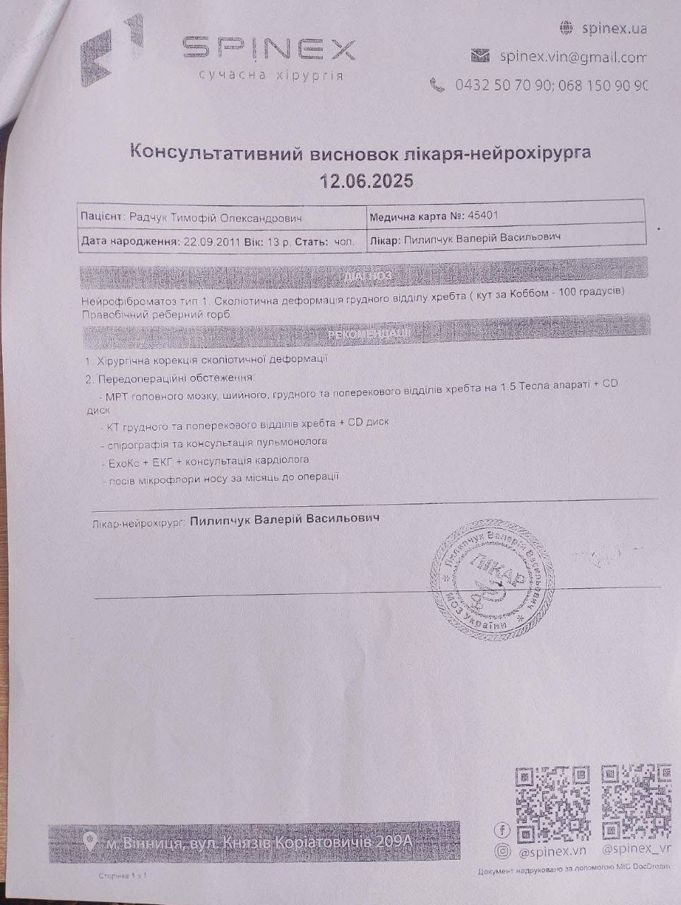 Ця сума є непосильною для родини хлопчика. Попри те, що батьки працюють, самостійно зібрати необхідні кошти вони не в змозі. Тому сім’я звертається до всіх небайдужих із проханням підтримати Тимофія та допомогти зібрати кошти на операцію.