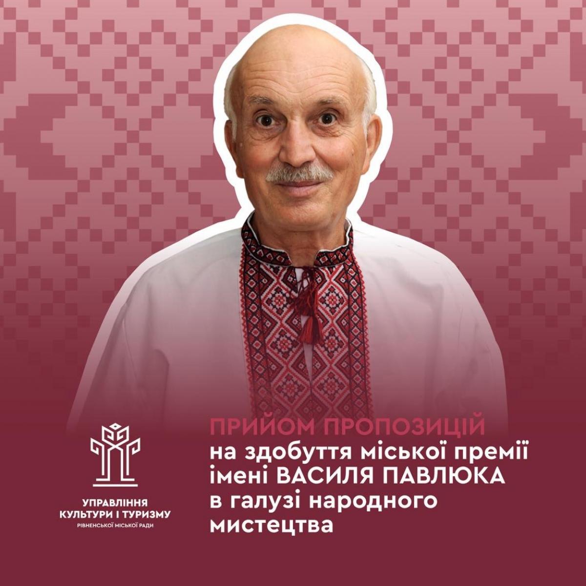 Триває прийом пропозицій щодо претендентів на здобуття міської премії імені Василя Павлюка в галузі народного мистецтва.
