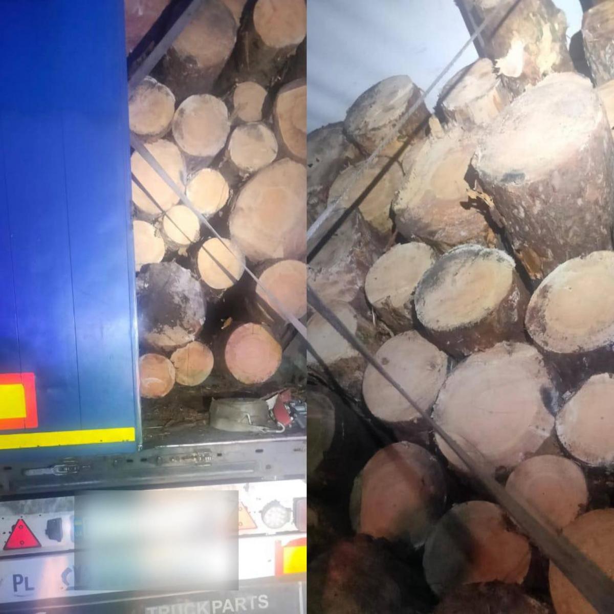 Під час поверхневої перевірки патрульні виявили, що в напівпричепі перевозяться лісоматеріали породи сосна (кругляк) без жодних супровідних документів.