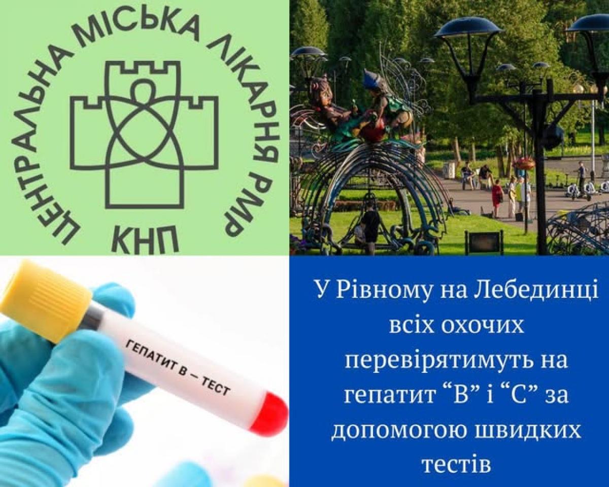 27 липня, з 12 до 14 год, у парку Молоді працюватимуть фахівці КНП «Центральна міська лікарня» РМР та ДУ «Рівненський обласний центр контролю та профілактики хвороб МОЗ України». Учасники заходу матимуть можливість дізнатися всю необхідну інформацію про гепатит – захворювання печінки запального характеру, як правило, вірусного походження.