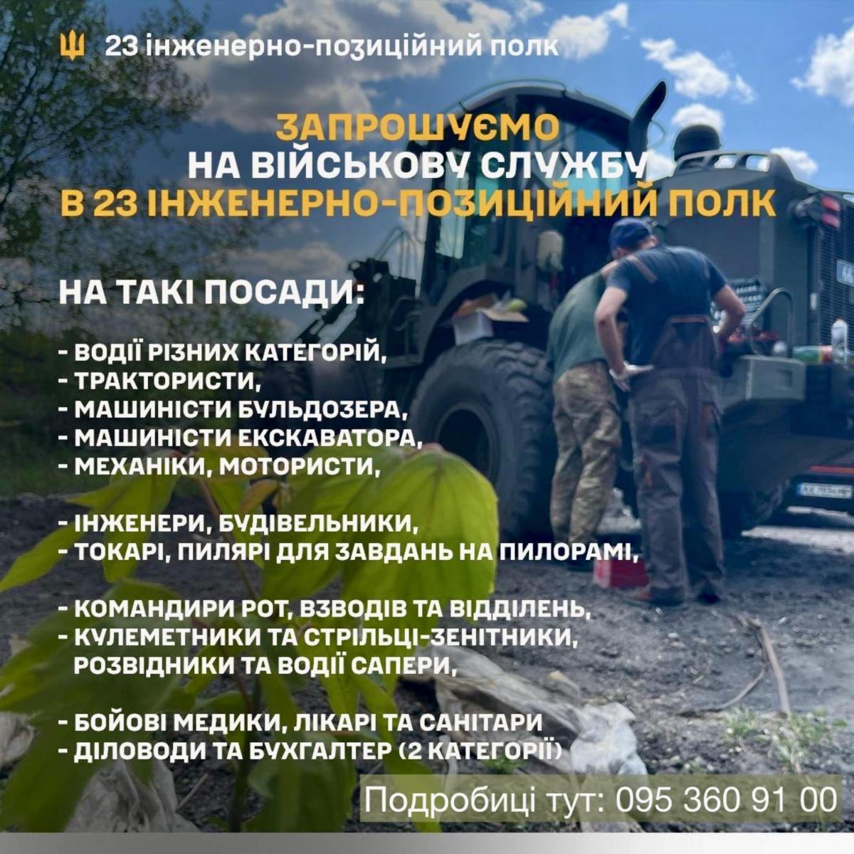Долучайтеся до 23 інженерно-позиційного полку – станьте частиною команди, яка творить оборону країни.