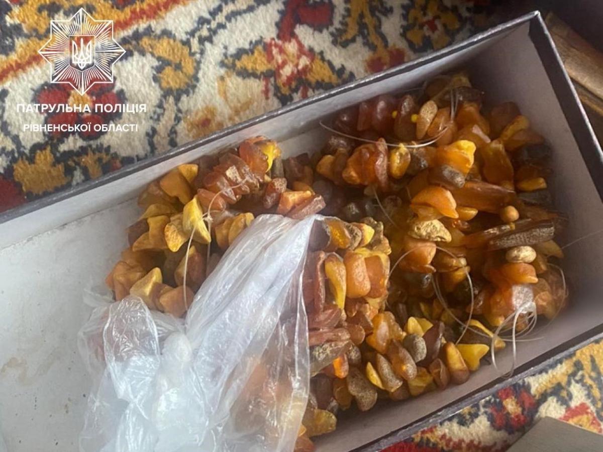 Патрульні повідомили, що є звернення про те, що громадянин зберігає незареєстровану зброю, та попросили дозволу оглянути гаражне приміщення. Там поліцейські виявили пластикове відро з камінням, схожим на бурштин.