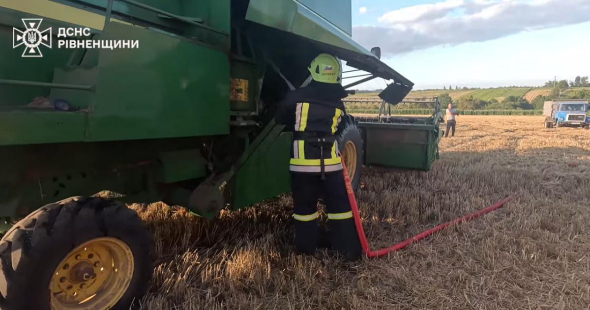 11 серпня о 19:07 поблизу села Грем’яче Острозької територіальної громади Рівненського району під час змолочування зерна загорівся комбайн John Deere.