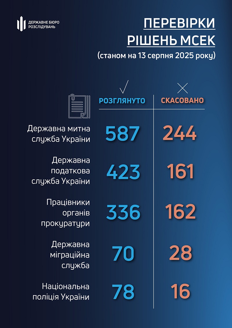 - Державна міграційна служба – скасовано 28 рішень із 70 розглянутих;
