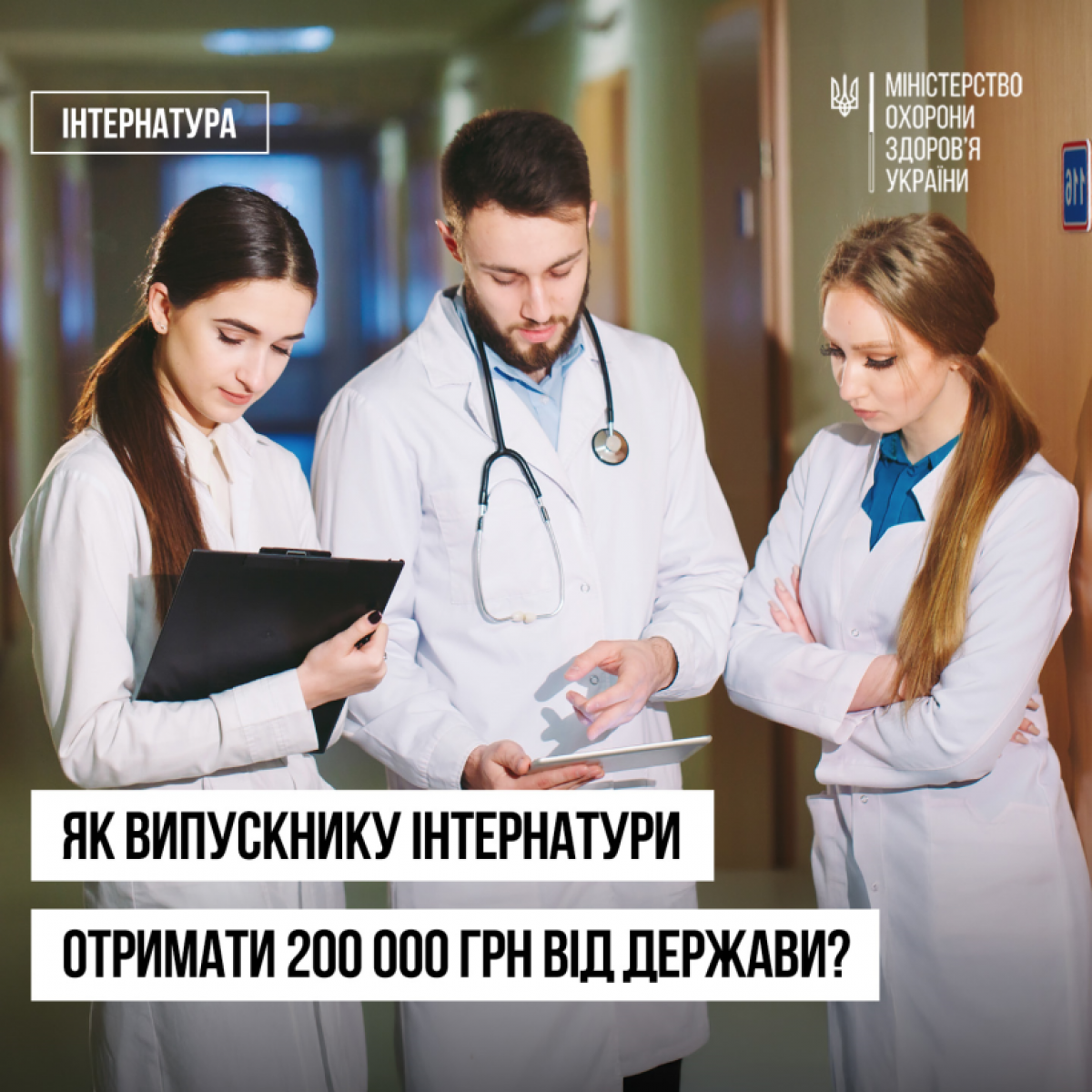 Лікарі, які починаючи з 2025 року закінчили інтернатуру в одному з 20 державних закладів вищої освіти, підпорядкованих МОЗ або МОН, можуть отримати 200 000 грн одноразової допомоги.