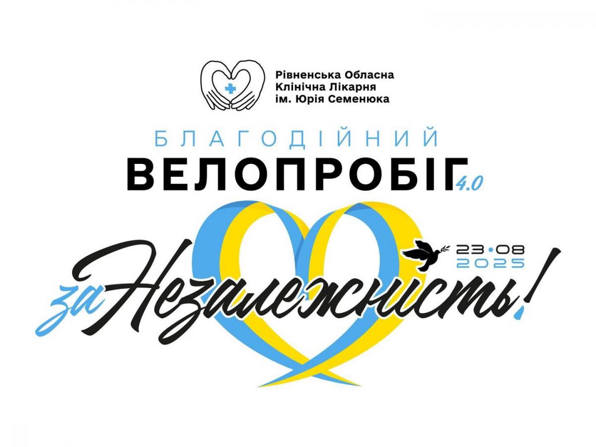 Рівненська обласна клінічна лікарня імені Юрія Семенюка запрошує всіх охочих долучитися до Благодійного Велопробігу 4.0 «За Незалежність!», який відбудеться 23 серпня 2025 року. Захід уже вчетверте об’єднає медичних фахівців, партнерів та всіх небайдужих у підтримці Збройних сил України.
