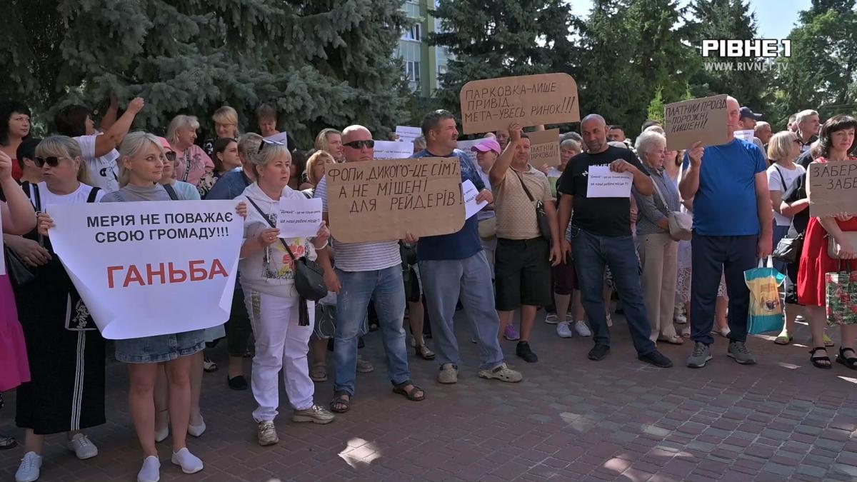 Мітингують, аби зберегти свою роботу. Перед сесією міської ради зібрались підприємці ринку "Дикого". Вони невдоволені, що ділянку вулиці, яку вони організували як парковку для працівників і покупців, можуть забрати на баланс Рівненського ШЕУ. Торгівці кажуть, що там облаштують платну парковку, яка перекриє їм доступ до робочих місць.