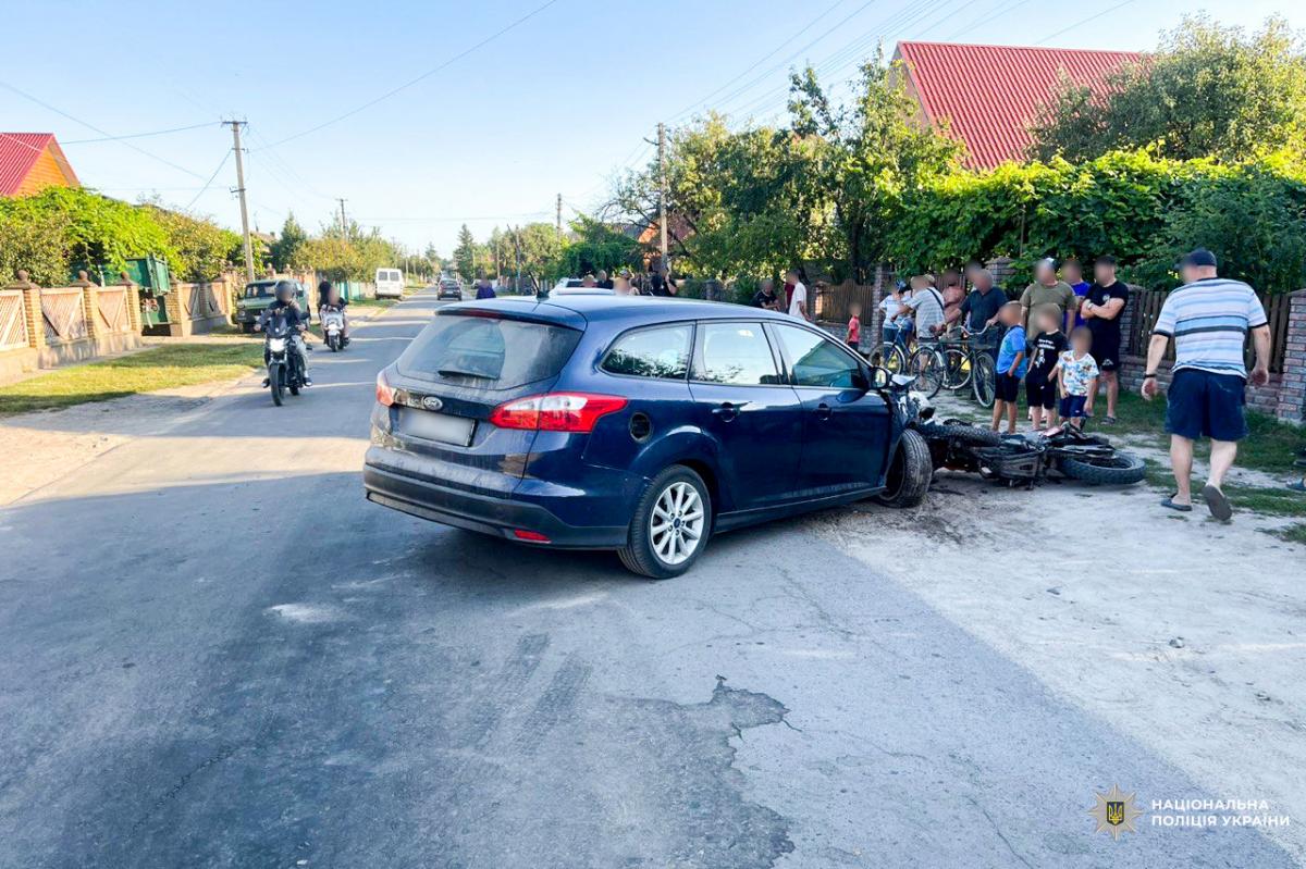 Унаслідок ДТП травм зазнав кермувальник двоколісного та пасажир, які були без мотошоломів. У 16-річного парубка медики діагностували відкритий перелом в ділянці ступні та забої. У 13-річного жителя Городища — закриту черепно-мозкову травму, струс головного мозку та травму грудної клітки. Обох госпіталізували до лікарні.