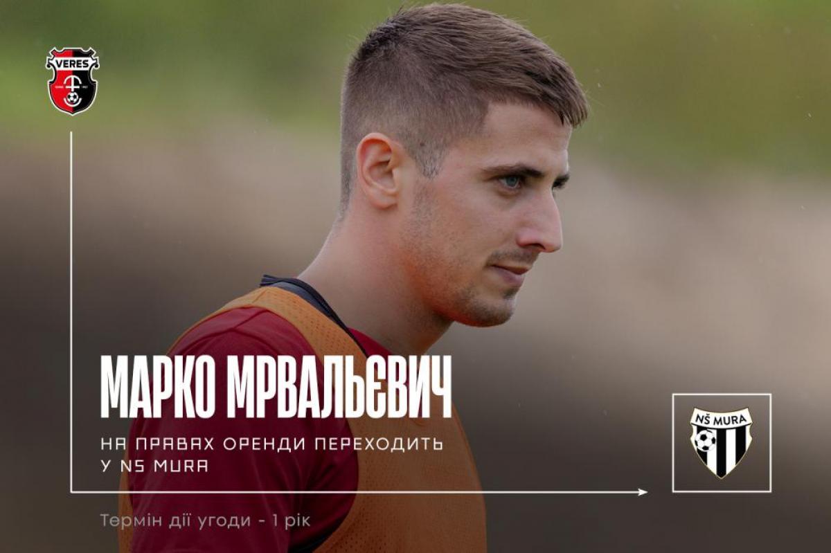 Нападник рівненського Вереса Марко Мрвальєвич решту сезону 2025/2026 на правах оренди проведе у складі словенської Мури.