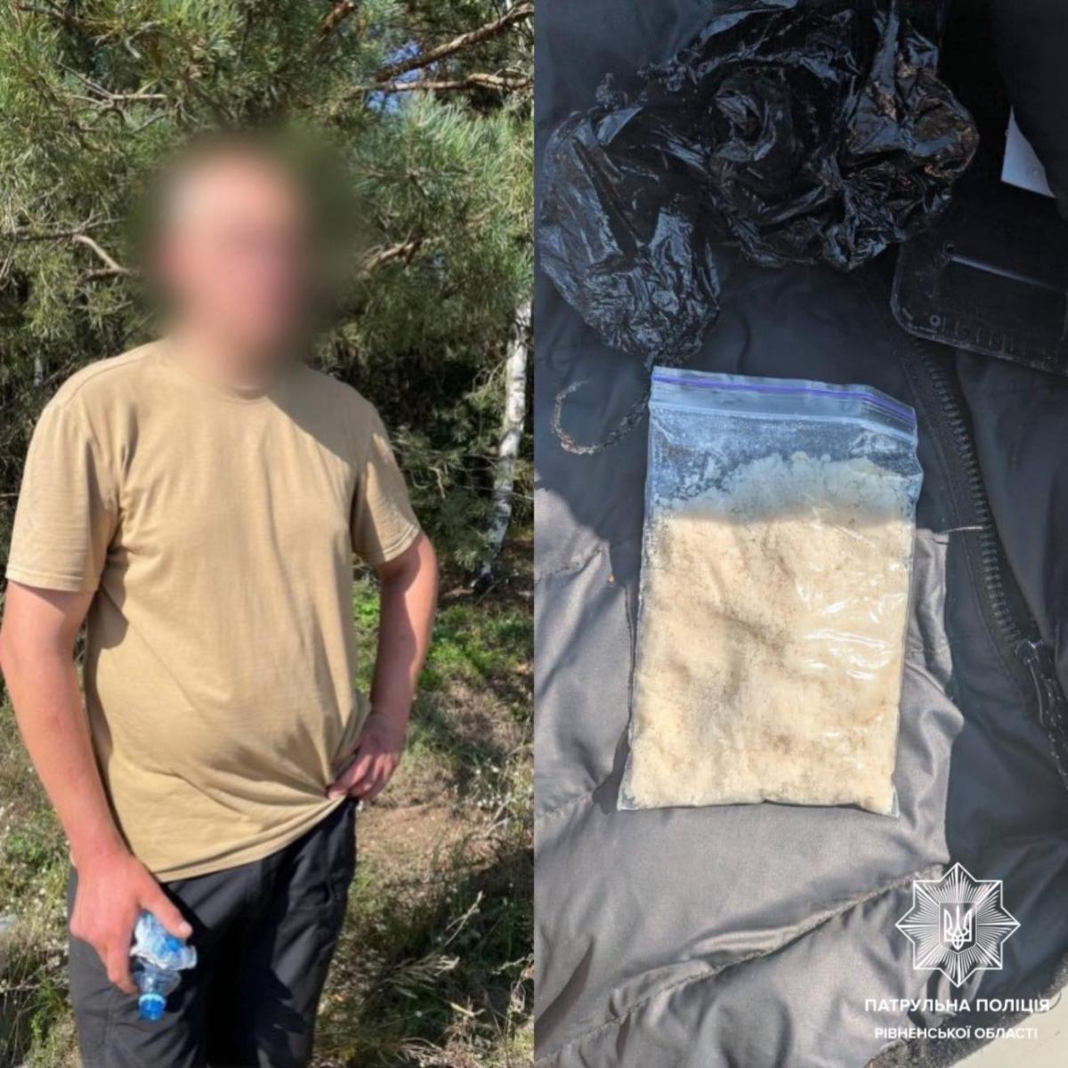 Прибувши за вказаною адресою, патрульні виявили трьох громадян. Під час поверхневої перевірки у 34-річного чоловіка інспектори знайшли поліетиленовий пакет із білою речовиною, зовні схожою на наркотичну.