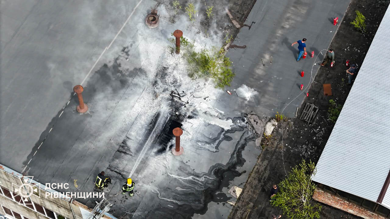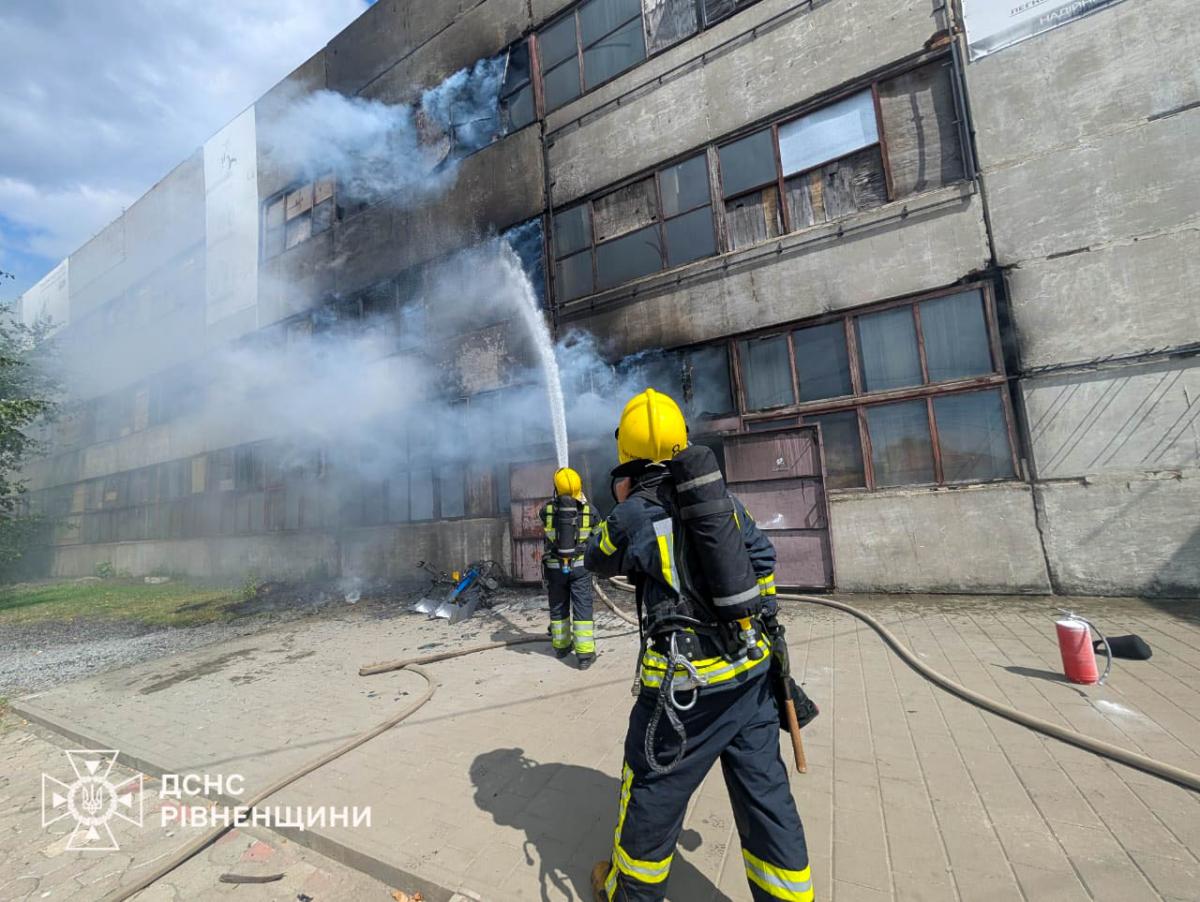 Вогонь виник у трьох поверховій неексплуатуючій складській будівлі. На місце події оперативно прибули рятувальники 8-ї державної пожежно-рятувальної частини м. Сарни. Вогнеборці оперативно подали на ліквідацію вогнегасні речовини.