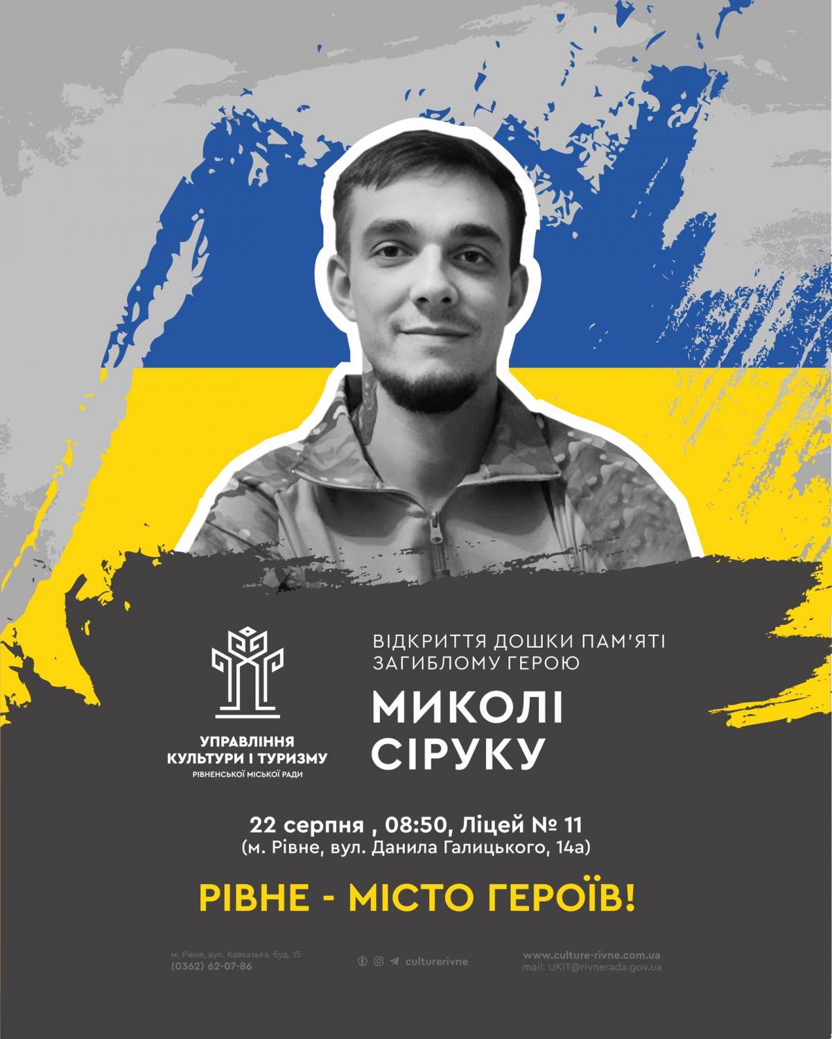 Микола Сірук народився 31 березня 1997 року у Рівному. Навчався у Рівненському ліцеї №11, згодом здобув освіту в Рівненському технічному коледжі НУВГП за спеціальністю «Хімік-лаборант». Певний час працював за кордоном. Коли почалося повномасштабне вторгнення, без вагань повернувся додому, а згодом був призваний захищати рідну землю.