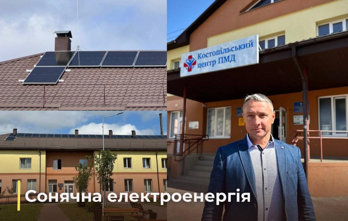 На даху будівлі Костопільського центру ПМД встановили сонячні панелі за кошти самого закладу. Вони вже генерують 14 кіловат потужності та працюють у тестовому режимі. У сонячні дні цього достатньо, щоб повністю забезпечити потреби медзакладу в електроенергії. Це дозволить зменшити витрати на комунальні послуги та зберігати кошти громади.