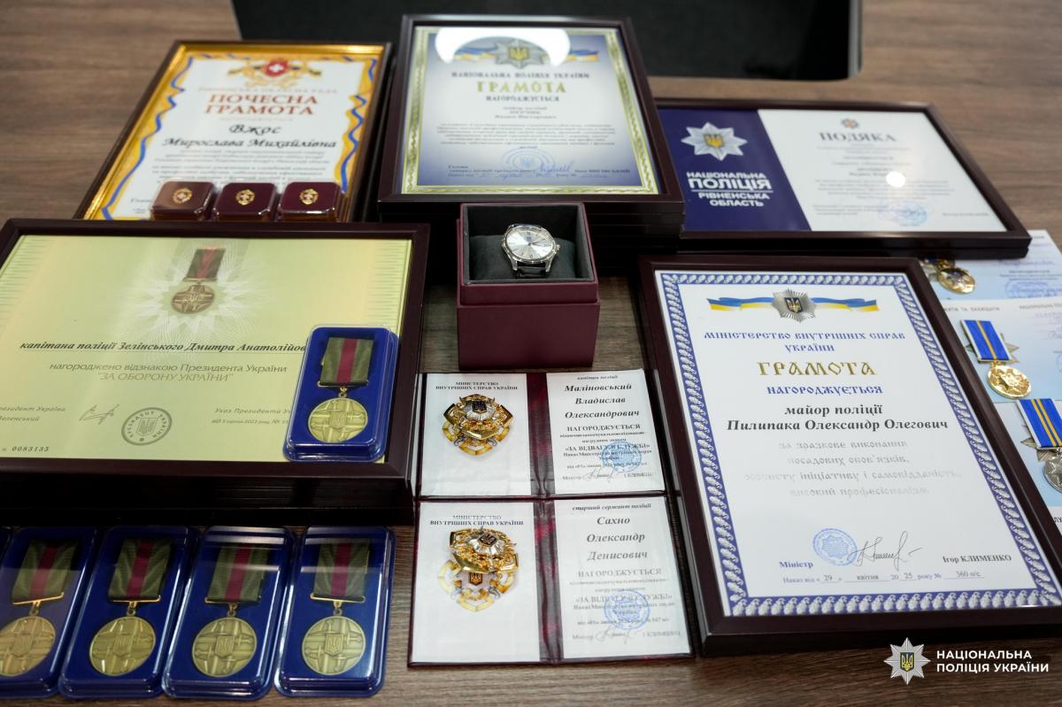 За сумлінне виконання службового обов’язку, вагомий особистий внесок у протидію злочинності та з нагоди відзначення державного свята начальник ГУНП в Рівненській області Віктор Шанський вручив поліцейським подяки, грамоти та відзнаки Міністерства внутрішніх справ, Національної поліції України, обласної та міської рад, ОК «Захід» та ГУНП в Рівненській області.