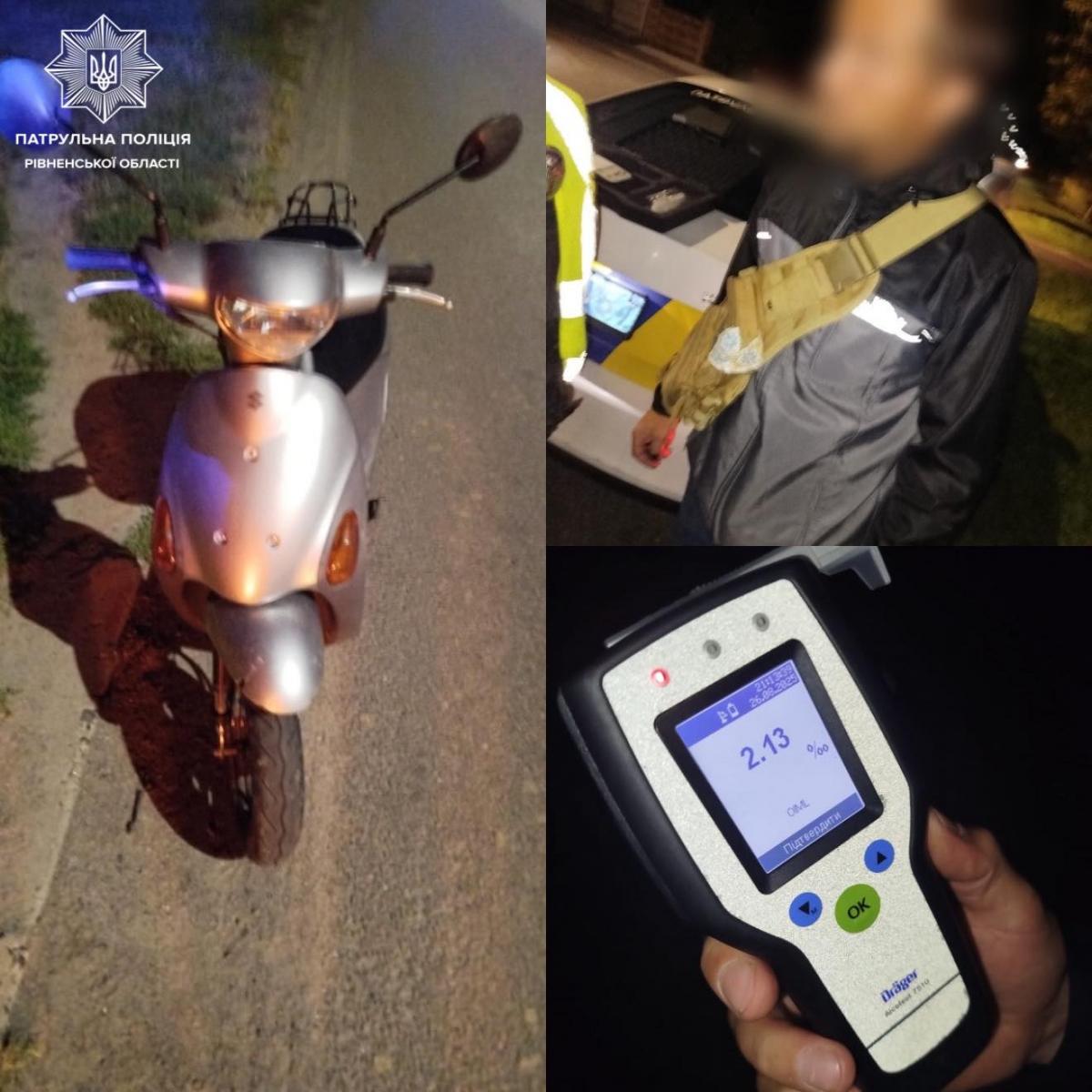 Уночі, під час патрулювання по вулиці Рівненській, інспектори зупинили водія скутера Suzuki за порушення правил дорожнього руху.