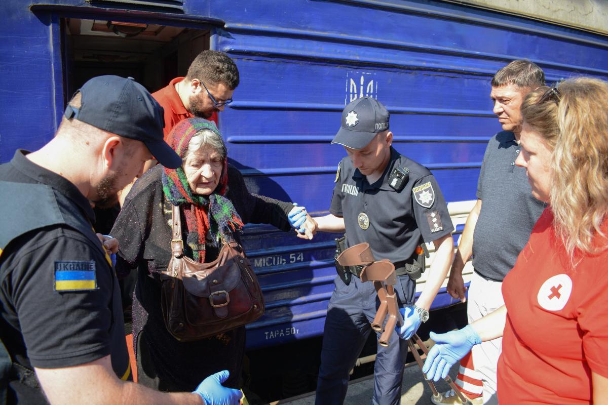 На пероні людей зустрічали представники органів влади, соцзахисту, волонтери, рятувальники та медики. Вони подбали про харчування, першу допомогу й психологічну підтримку.