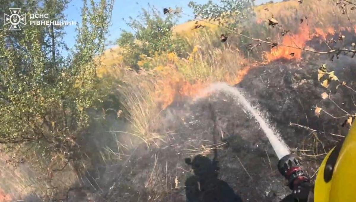 Так, у селі Калинівка, Корецької ТГ, Рівненського району виникло займання сухої трави та чагарників на площі 0,6 га.