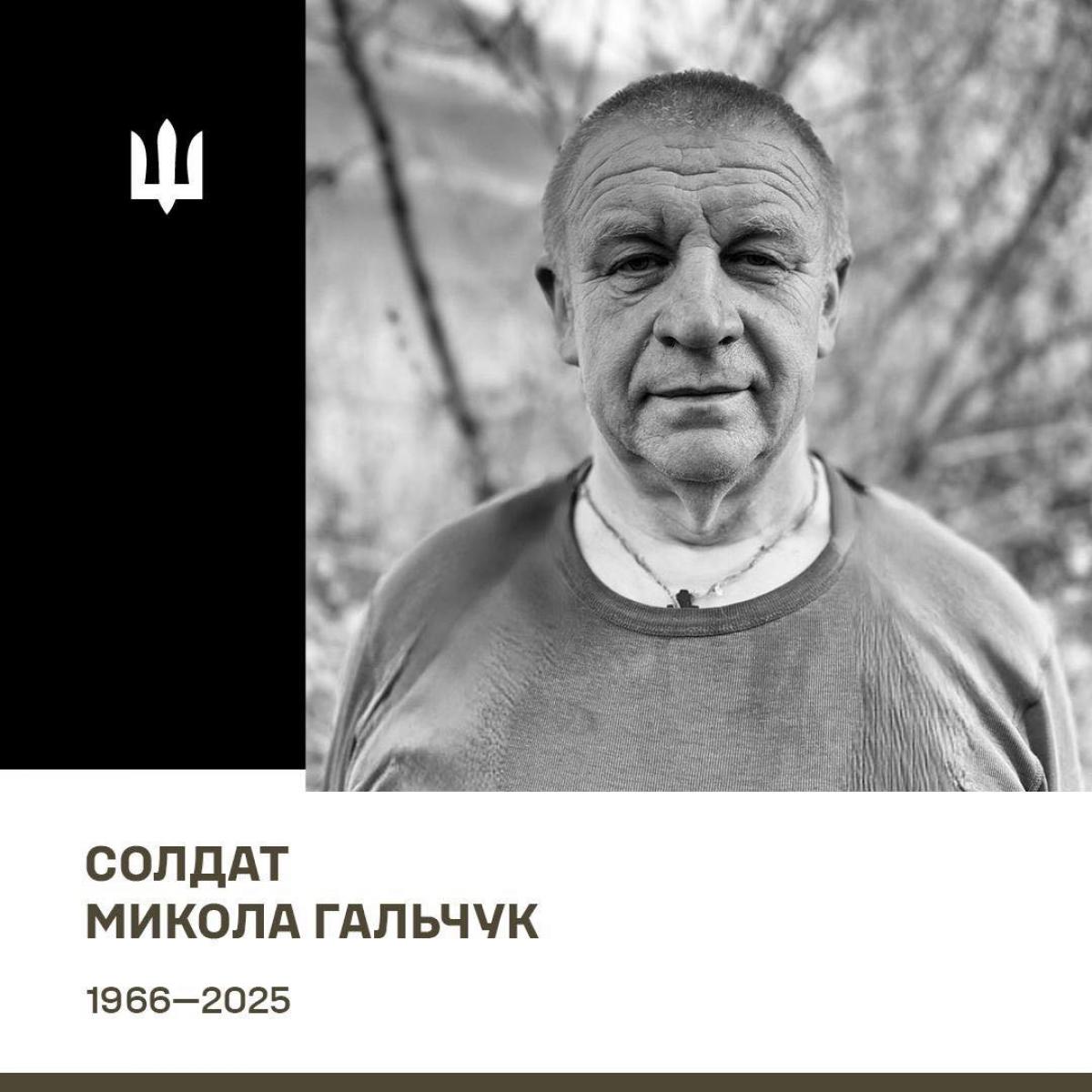 На Сумщині, внаслідок гострої серцево-судинної недостатності, зупинилося серце водія-кранівника одного з підрозділів 23 інженерно-позиційного полку, солдата Миколи Степановича ГАЛЬЧУКА.