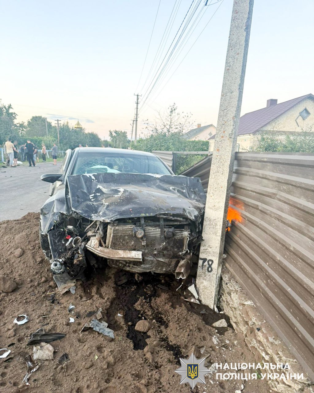 Від удару легковик «Audi» виїхав за межі проїзної частини, де врізався у бетонний стовп.
