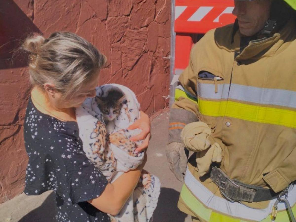 За допомогою пожежної драбини кота зняли та передали місцевим жителям.