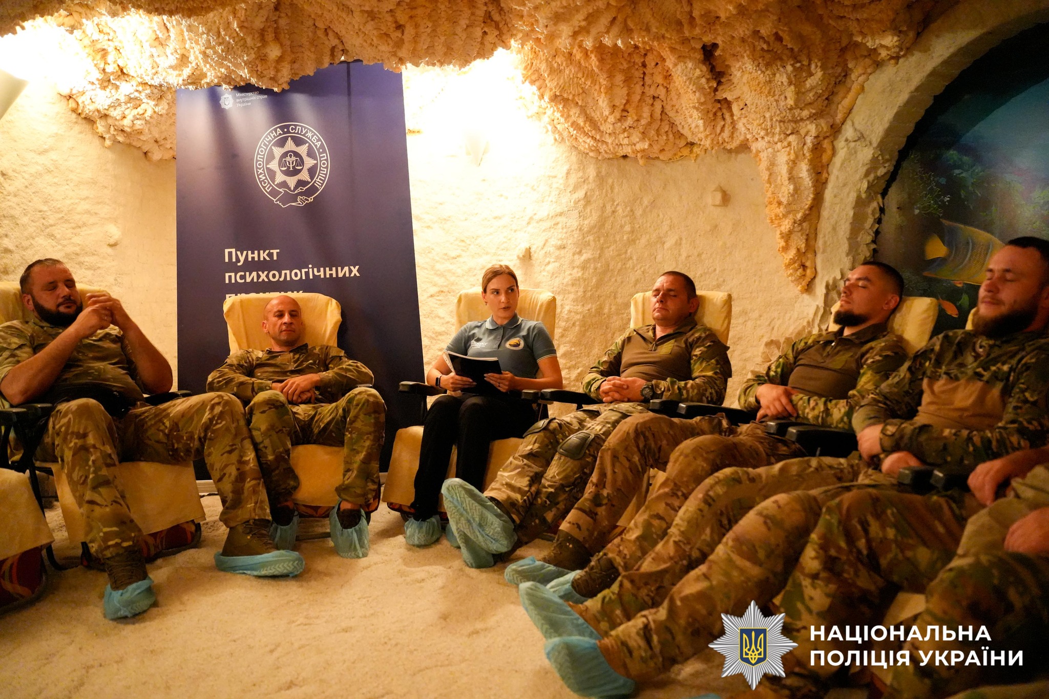 Психологи поліції Рівненщини провели у соляній печері черговий відновлювальний захід для колег, які повернулися з передової.