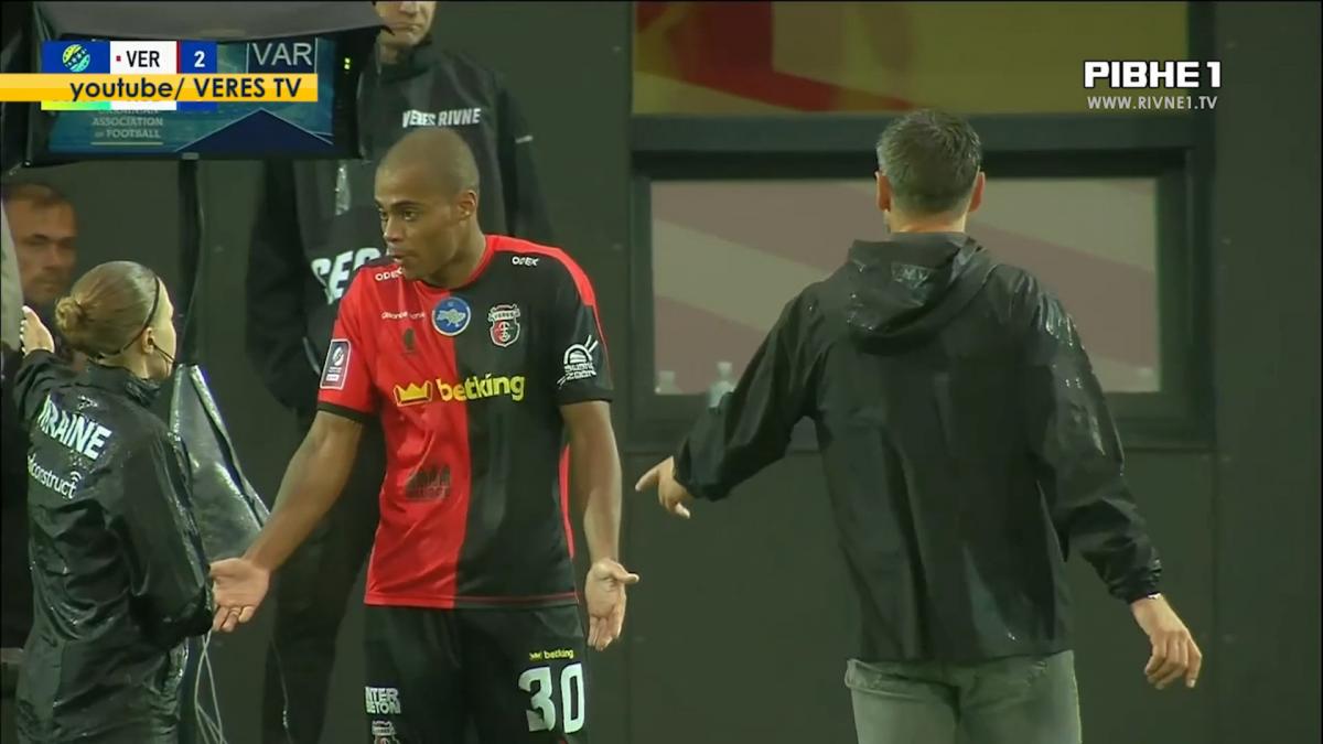 Інтриги грі додав Денис Ндукве. На чужій половині поля він повівся на провокацію і зіграв не по-спортивному. За це отримав пряму червону картку і більш ніж на пів години залишив рівнян у чисельній меншості.