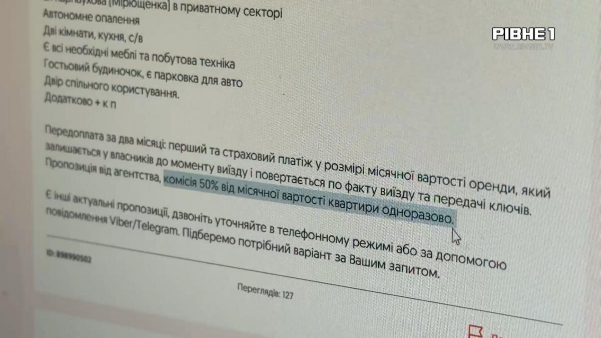 У петиції звертають увагу, що вартість послуг рієлторів чимала. Подекуди вона сягає 100% від ціни за оренди за місяць. У Рівному фахівці з нерухомості беруть 50%. Зазначають, що така вартість виправдана.