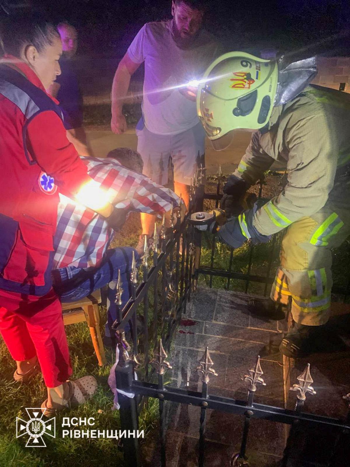 На місце події оперативно прибули рятувальники 9-ї державної пожежно-рятувальної частини м. Березне. За допомогою спеціального інструменту вони зрізали частину металевої конструкції та деблокували потерпілого.