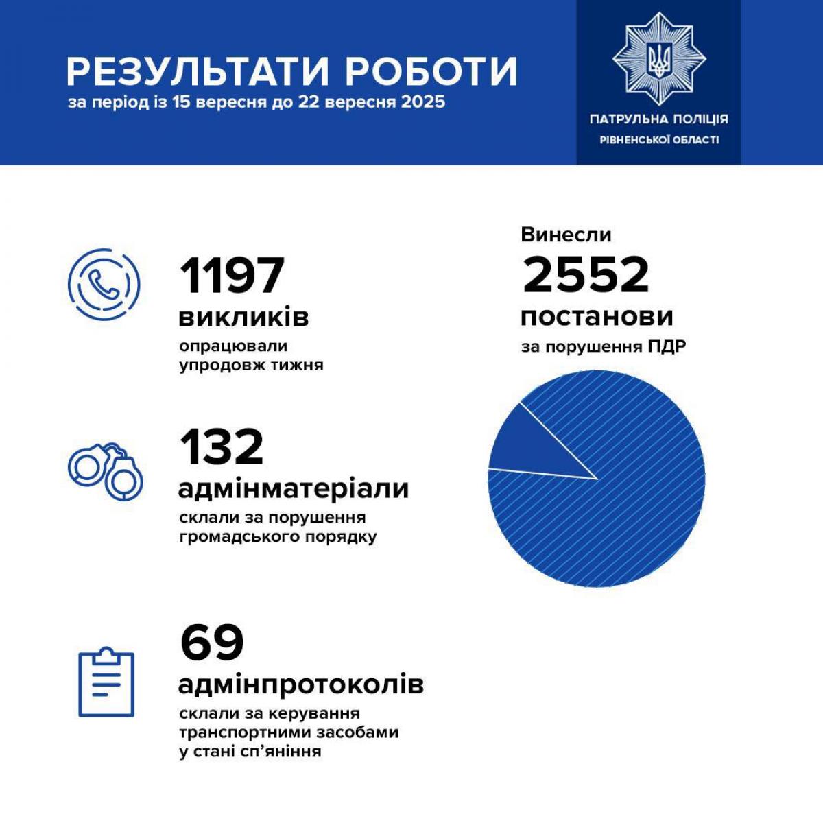 - винесли 2552 постанови за порушення правил дорожнього руху.