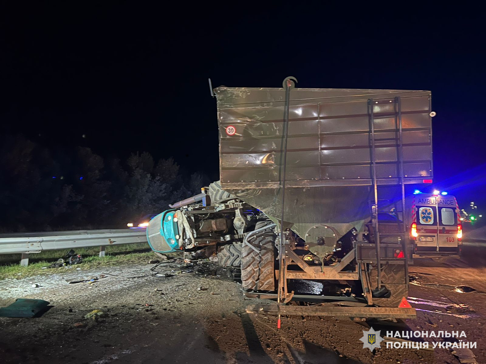 Унаслідок зіткнення трактор перекинувся: поліцейські разом з рятувальниками деблокували водія.