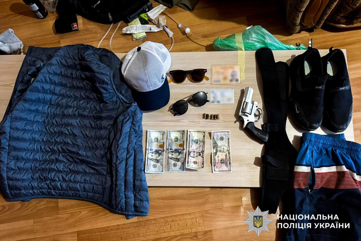 Під час невідкладного обшуку правоохоронці за місцем проживання виявили та вилучили 255 доларів, кредитки, револьвер, 5 патронів та одяг. Місце знаходження решти суми встановлюють.