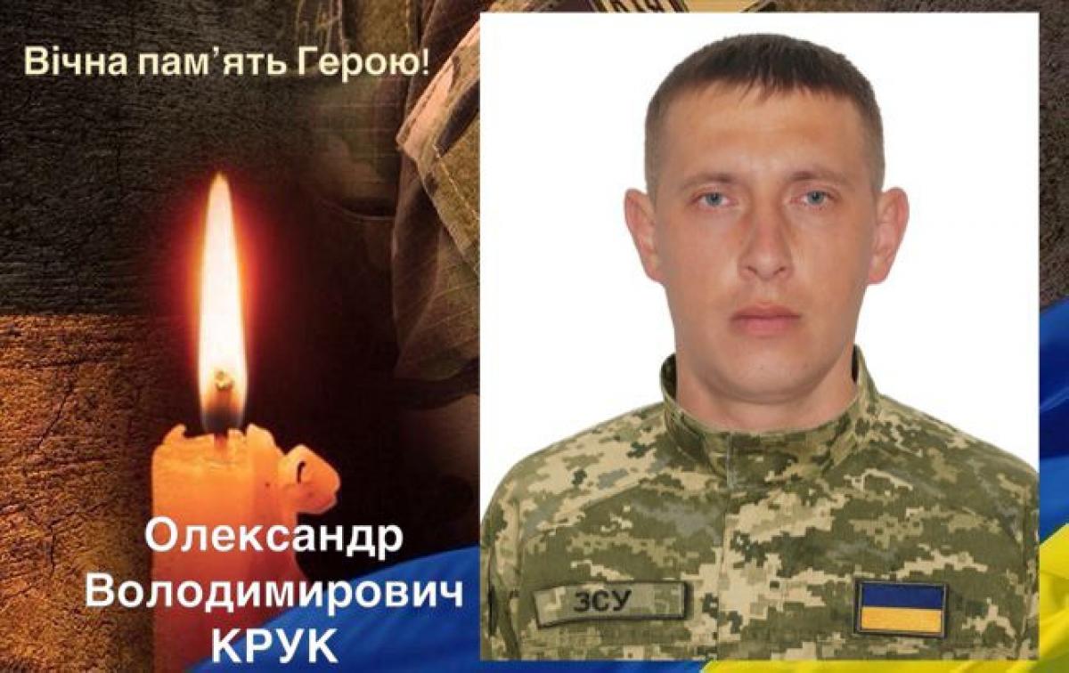 Олександр КРУК народився 17 серпня 1992 року у селі Злазне в багатодітній родині, проживав з сім'єю у селі Садки. Він був призваний на військову службу 21 березня цього року та проходив її як водій-електрик роти безпілотних авіаційних комплексів мотопіхотного батальйону.
