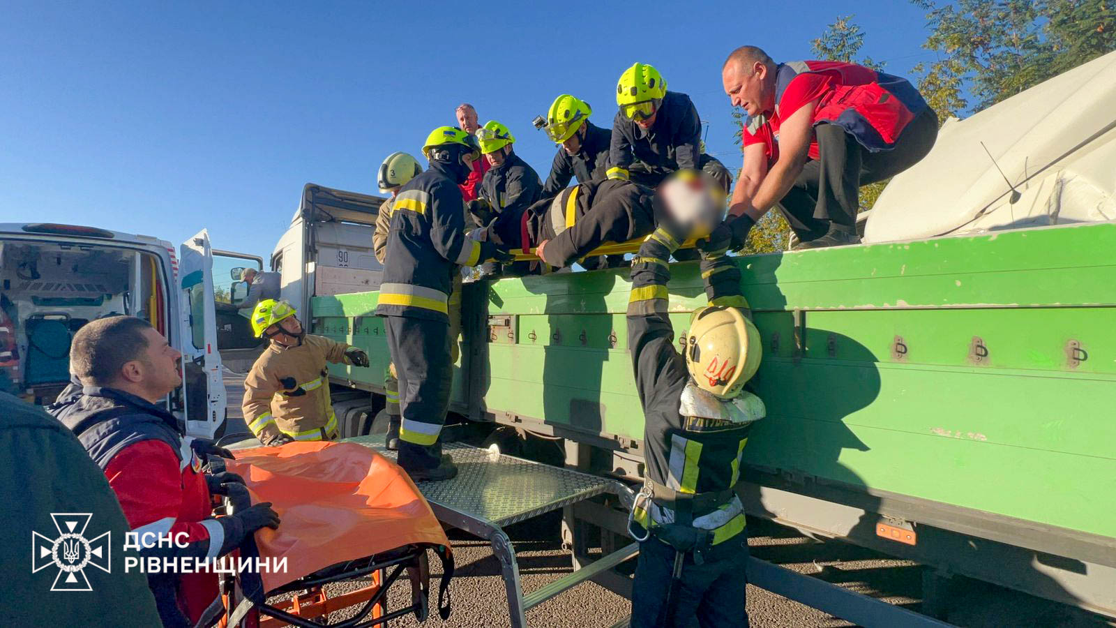 Прибувши на місце виклику, рятувальники встановили, що у результаті зіткнення в кабіні вантажівки DAF було затиснуто водія. За допомогою спеціального обладнання вони деблокували потерпілого та передали його медикам.