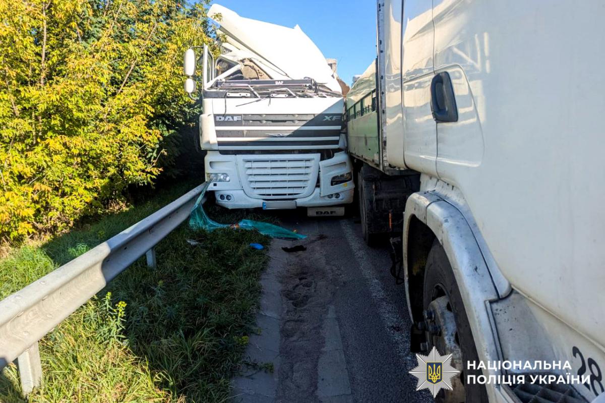 В цей час керманич ще однієї вантажівки «DAF», 29-річний житель села Кустин, який рухався у попутному напрямку, не встиг відреагувати на зміну дорожньої обстановки та допустив зіткнення із вказаними авто.