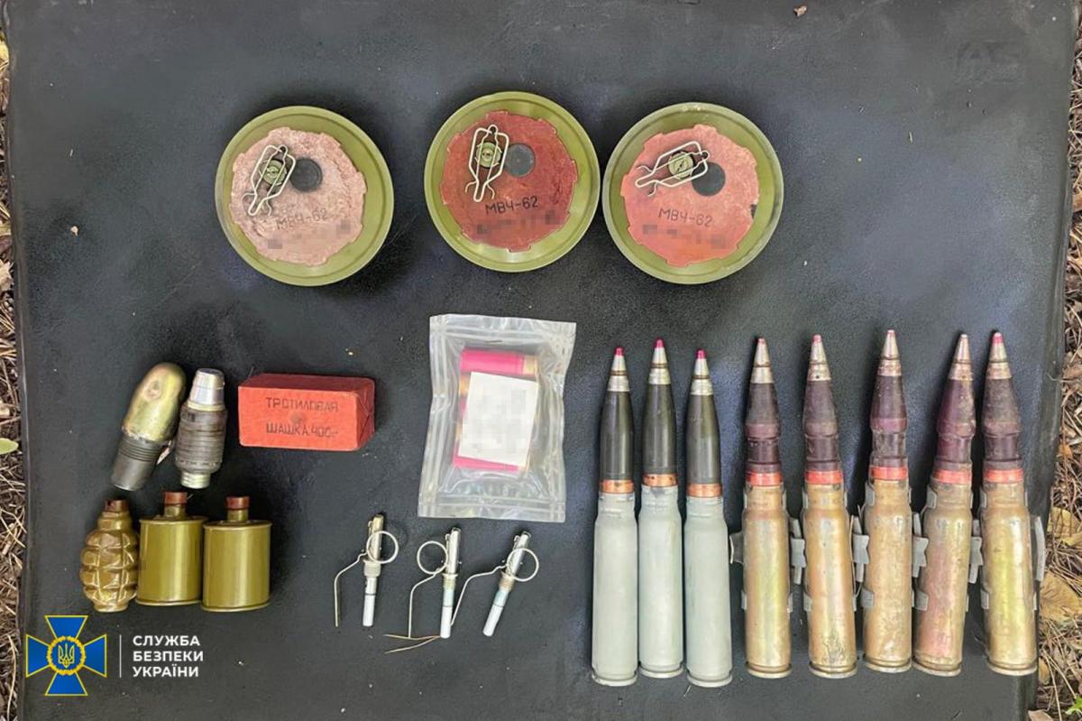 Під час обшуку зі схрону вилучили ще 8 артпострілів та 4 бойові гранати, одна з них до підствольного гранатомета, 3 підривачі до протитанкової міни, артилерійський снаряд та тротилову шашку