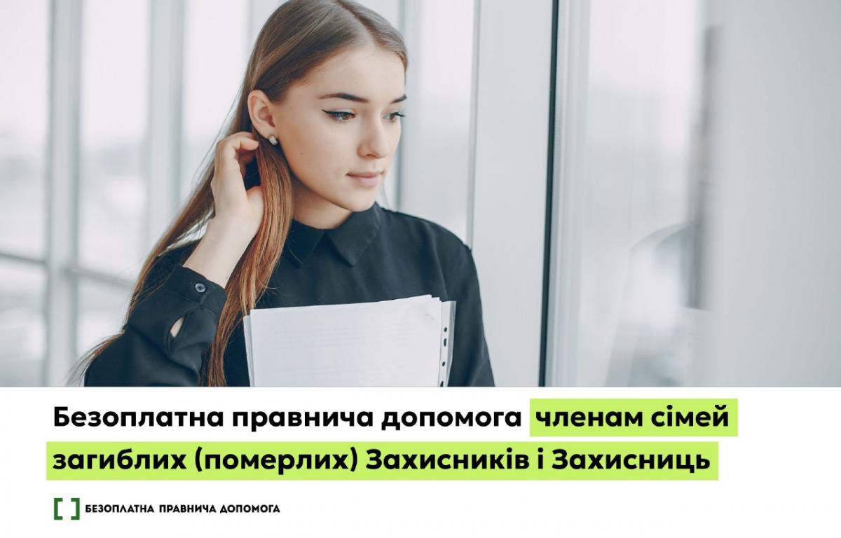 Члени сімей загиблих (померлих) ветеранів війни та члени сімей загиблих (померлих) Захисників і Захисниць України – мають право на усі види правничих послуг від системи надання безоплатної правничої допомоги.