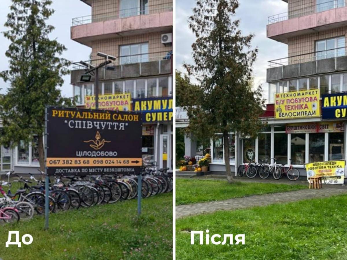 У результаті власники трьох рекламних щитів самостійно їх демонтували, власник магазинчика біля «Кристалу», встановленого з порушеннями, його поки не прибрав. Про це повідомила пресслужба Костопільської міської ради.