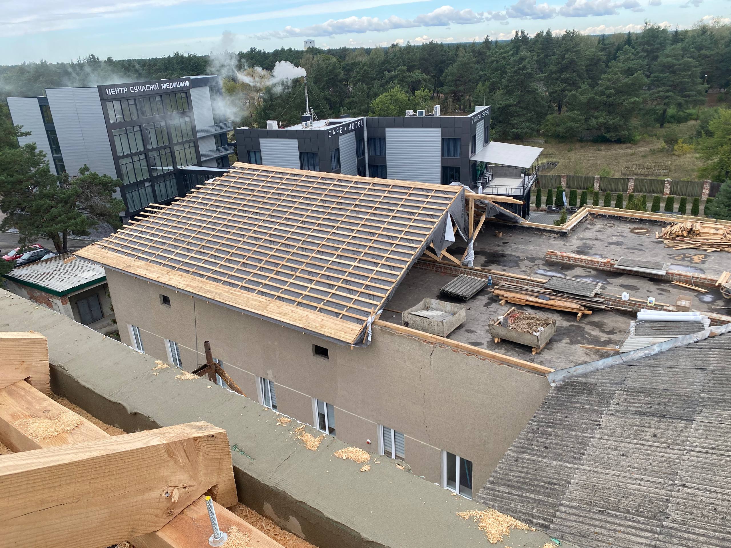 Вже влаштовано новий дах, проведено часткове утеплення фасаду. Триває заміна вікон та облаштування інженерних мереж у підвальному приміщенні та монтаж радіаторів.