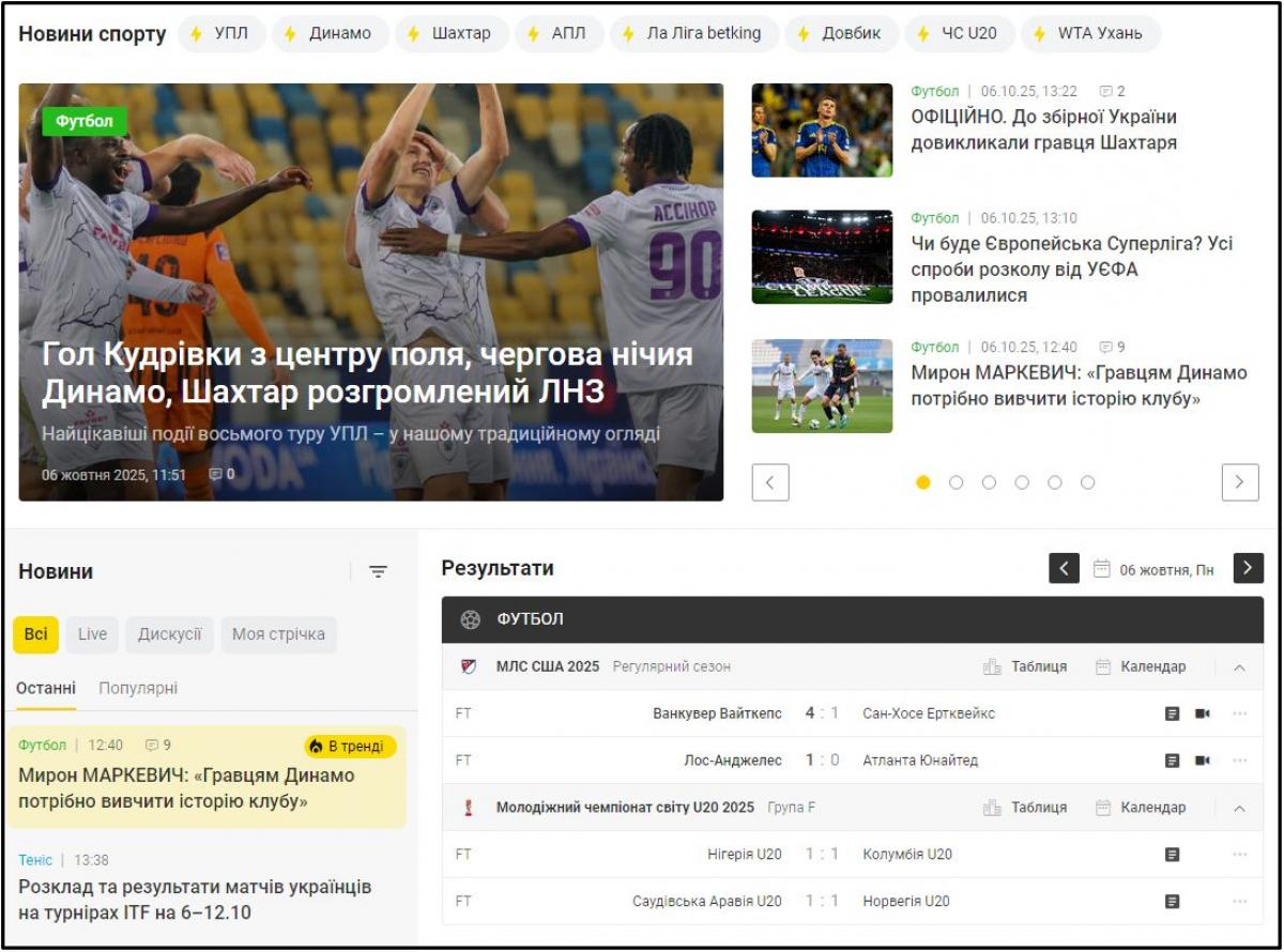 Все це можна безплатно знайти на популярному тематичному сайті Sport.UA.