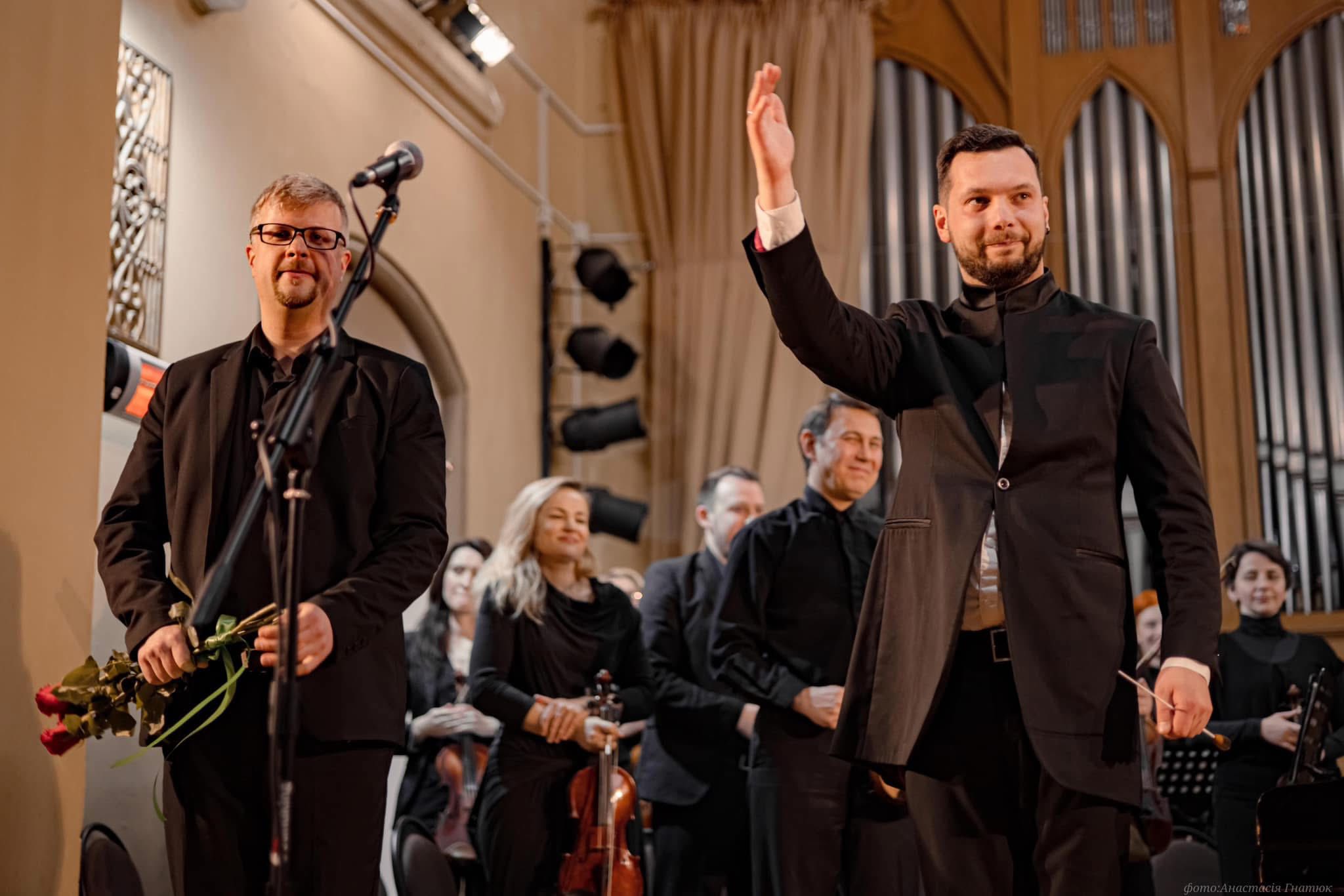 За диригентським пультом — Ігор Муравйов, український скрипаль і диригент.
