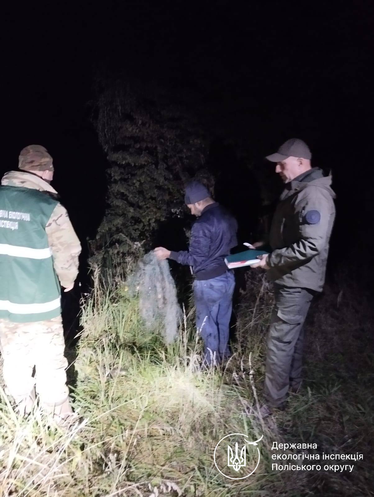 16 жовтня 2025 року державними інспекторами з охорони навколишнього природного середовища спільно з громадськими інспекторами з охорони довкілля Поліського округу під час проведення рейдових заходів державного нагляду (контролю), спрямованих на попередження, виявлення та припинення порушень природоохоронного законодавства у сфері охорони, використання та відтворення водних біоресурсів, зафіксовано факт грубого порушення Правил любительського рибальства.