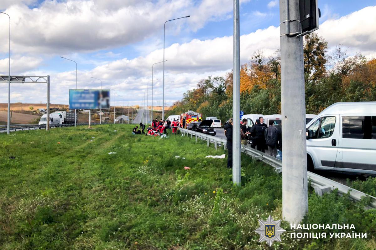 Унаслідок зіткнення легкових автомобілів «Fiat Talento» та «Daewoo Sens» загинула жінка 1957 року народження та постраждав чоловік 1952 року народження. Їх ще до прибуття рятувальників деблокували громадяни та передали медикам. Чоловіка госпіталізували до лікарні, наразі його стан оцінюють лікарі.