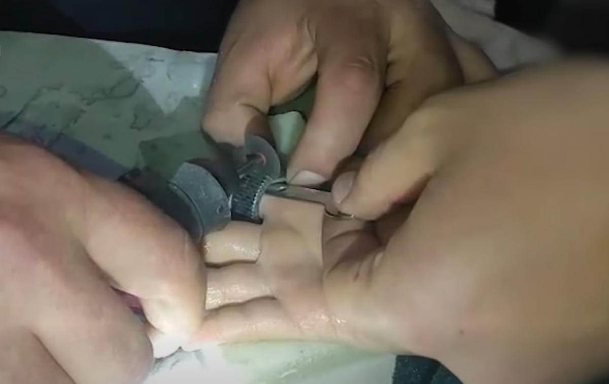 Рятувальники за допомогою спеціального інструменту обережно зрізали кільце, не завдавши дитині ушкоджень.